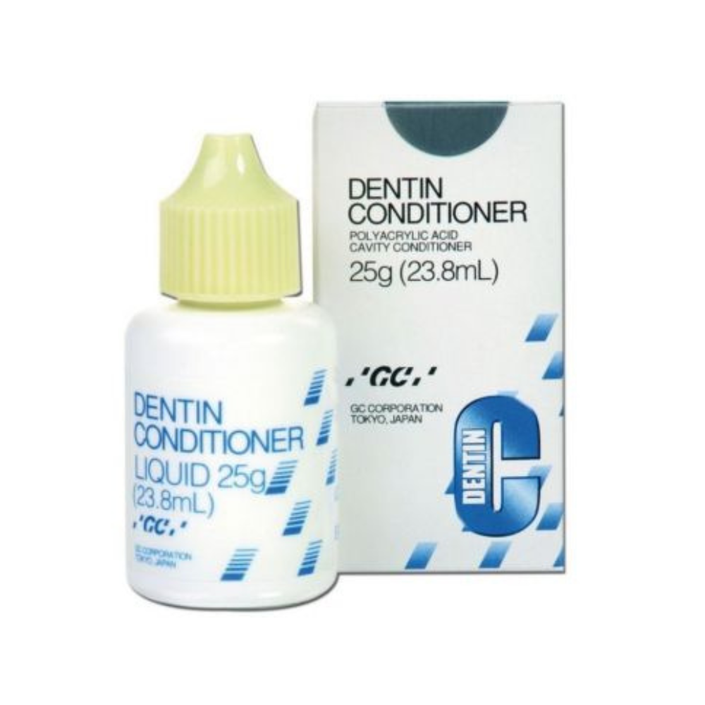Dentin Conditioner 23.8 ml GC solutie de acid poliacrilic 10 % pentru curatarea suprafetelor dentare in vederea imbunatatirii adeziunii cimenturilor ionomere de sticla.