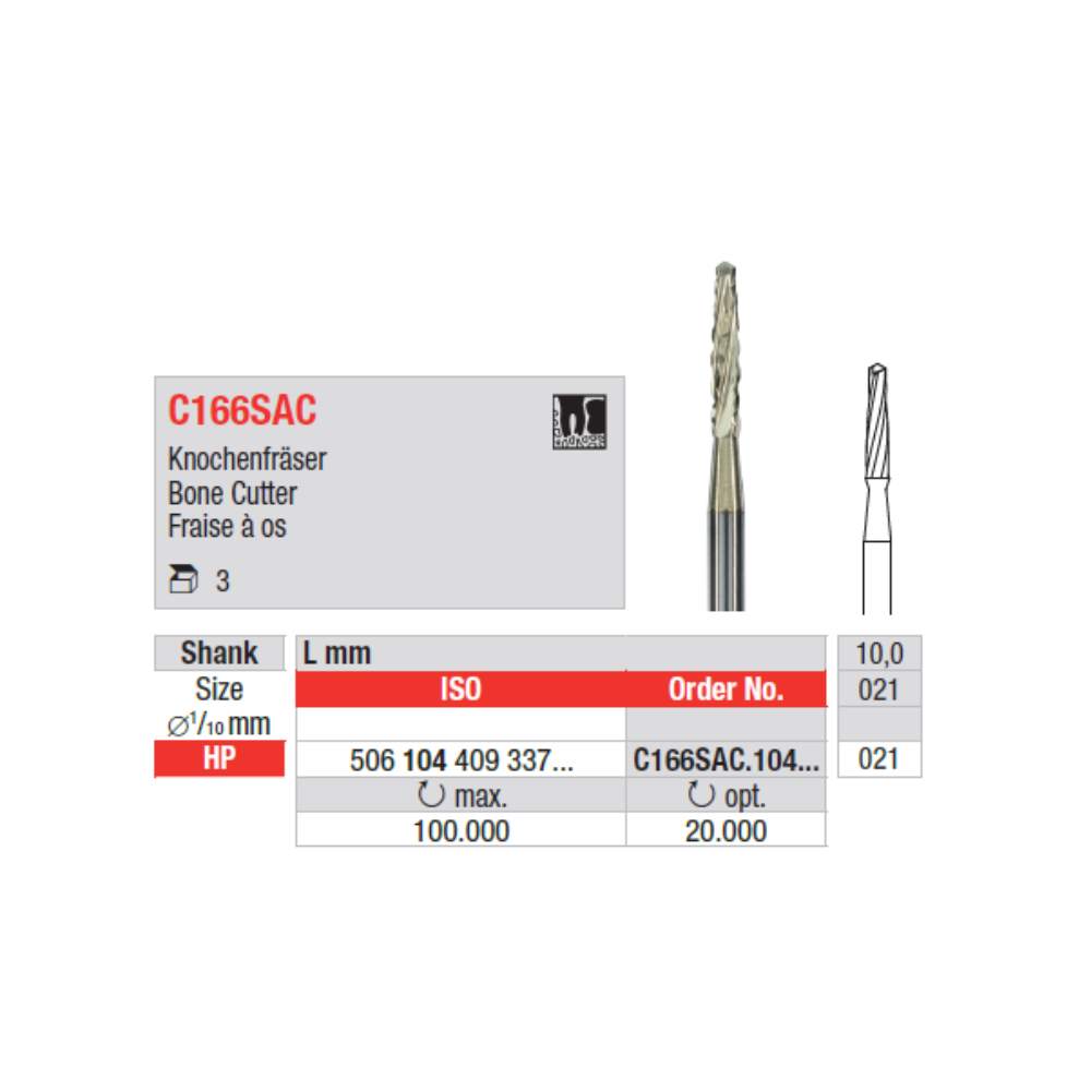 Caracteristici Freza Chirurgicala C166SAC :